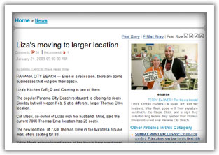 "Even in a recession, there are some businesses that outgrow their space. Liza's Kitchen Cafe and Catering is one of them. The popular Panama City Beach restaurant is closing its doors Sunday but will reopen at a different, larger Thomas Drive location."